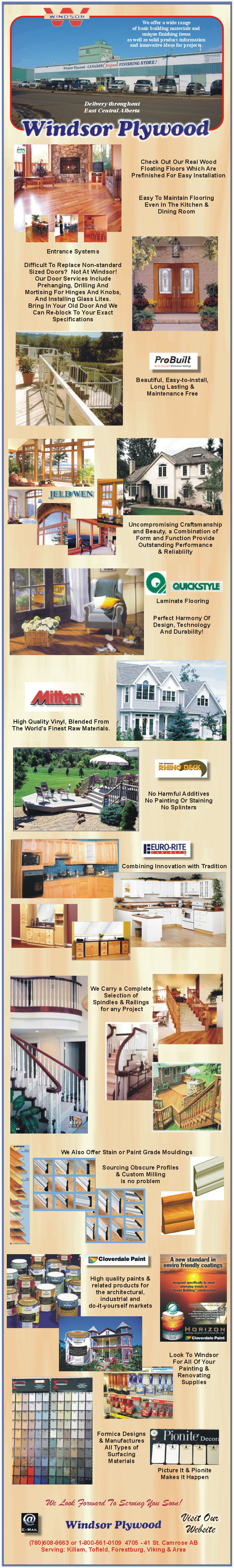 Building Materials by Windsor Plywood in Camrose, Alberta, offers, Lumber, construction materials, building materials, construction supplies, building supplies, cut lumber, Paints, paint supplies, hardwood, flooring, hardwood flooring, laminate flooring, cork flooring, mouldings, decking, windows, doors, window installation, door installation, Viking, Forestburg, Camrose, Alberta, house plans, siding. Building Materials by Windsor Plywood in Camrose, Alberta, offers, Lumber, construction materials, building materials, construction supplies, building supplies, cut lumber, Paints, paint supplies, hardwood, flooring, hardwood flooring, laminate flooring, cork flooring, mouldings, decking, windows, doors, window installation, door installation, Viking, Forestburg, Camrose, Alberta, house plans, siding. |