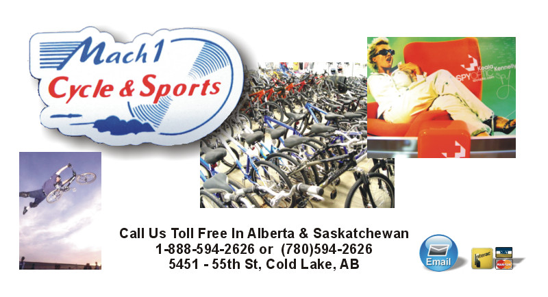 Sporting Goods, Cold Lake, Alberta, Mach1 Cycle & Sports, Hockey equipment, skates, hockey skates, Bikes, mountain bikes, bicycles, skate sharpening, roller blades, inline skates, bicycle repairs, bike repairs, sports equipment, skate boards, skateboard accessories, skateboards, bike accessories, hockey equipment, soccer gear, sports clothes