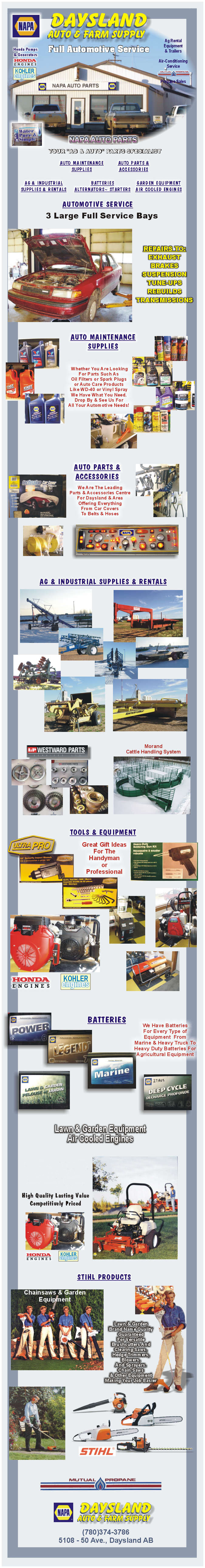 Napa Auto Parts, Daysland Alberta, Auto Parts, auto supplies, industrial supplies.