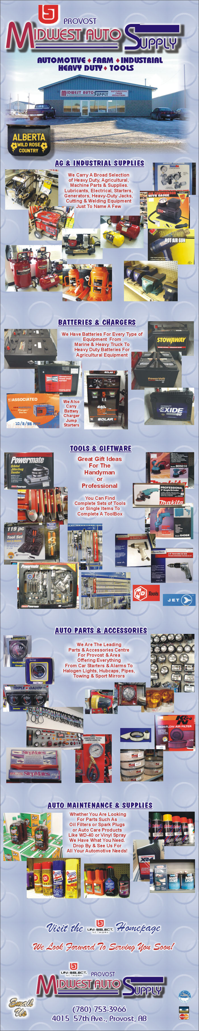 Mid West Auto Supply, Auto Parts Plus, Auto Parts, Provost, Alberta.